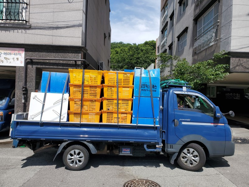 그렇게 각자 더치 페이를 하고 식당을 나오니 저만치 작은 이삿짐 트럭 한 대가 와있는게 보인다.