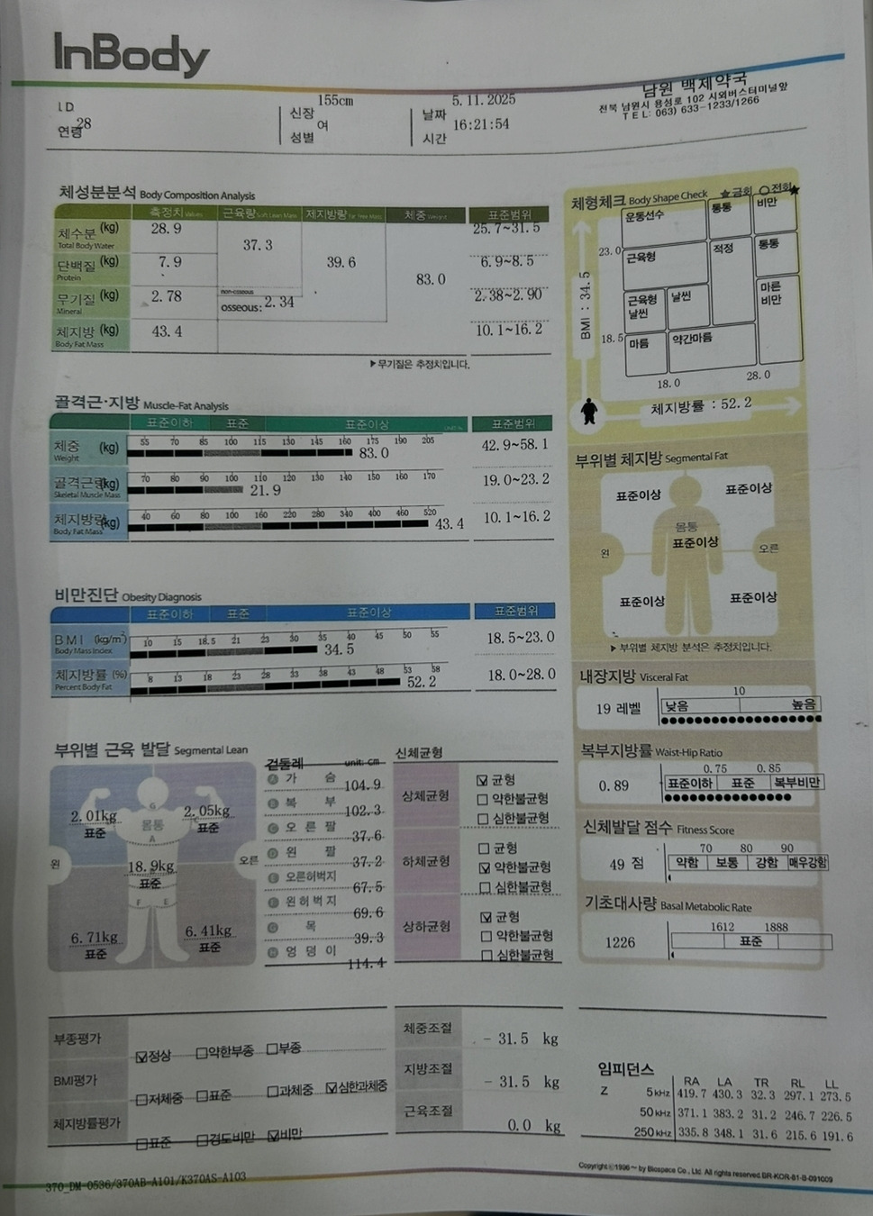 가는 길에 약국이 보여서 무료 인바디 검사를 받았습니다.