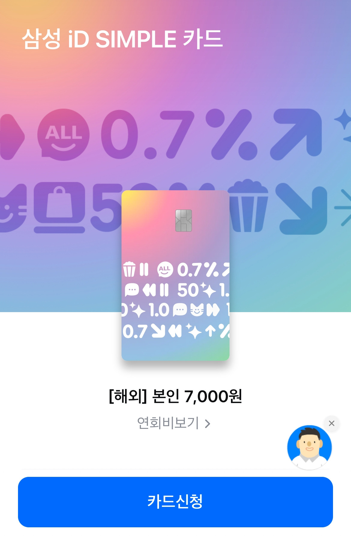 한도에 상관없이 국내외 가맹점에서 0.7%를 할인해 주는 카드였습니다.