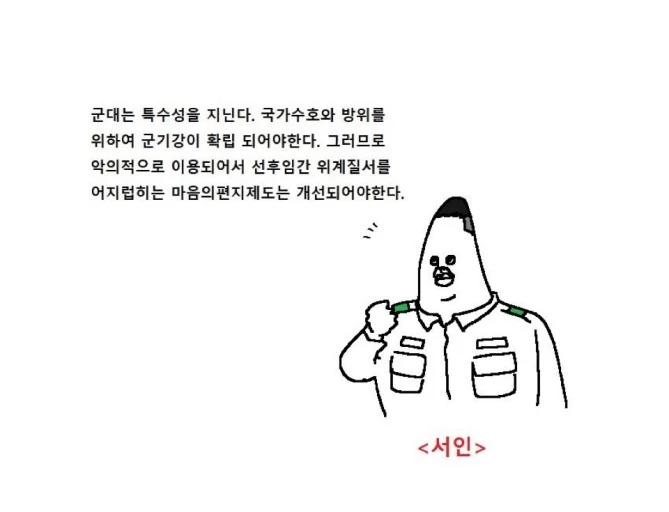 대한민국 남자라면 누구나 국방의 의무를 다해야 한다. 따라서 군대에 가야 한다. 대한민국의 헌법에 제시돼 있는 법안이다. 나 또한 국방의 의무를 하고 있는 중이다. 오늘의 글은 내가 지금 지내고 있는 군대와 여러 가지 매체나 사람들의 이야기로 들은 과거군대에서 대해서 써볼까 한다.