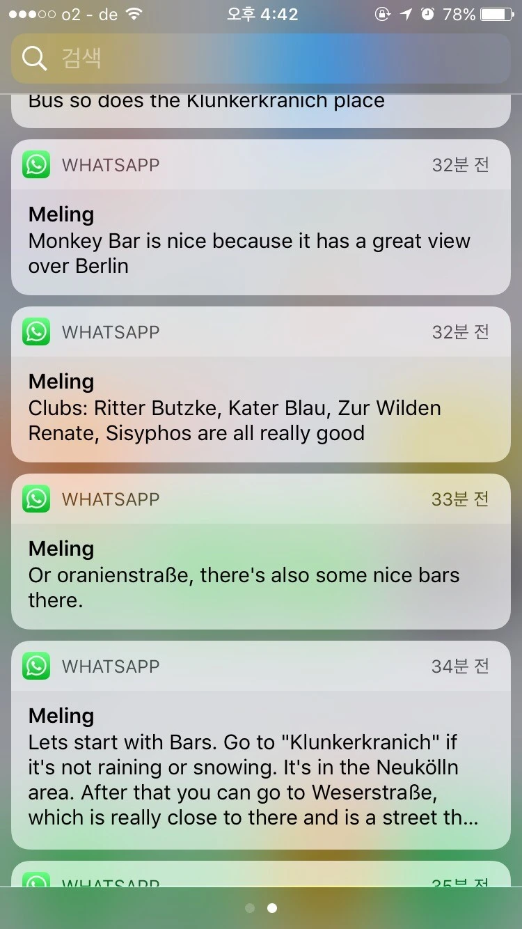 앞서 말한 가장 친한 친구인 멜리나는 독일 남동쪽에 위치하는 파사우라는 곳에서 대학교를 다녔는데 상해에서 한 학기가 끝나고 돌아갈 무렵에 나에게 파사우에 같이 가자고 제안을 했었다. 그때 당시에 나는 한국인 유학생들의 텃세에 치이고 가장 친했던 친구들이 각자 본인 나라로 돌아가기 시작할 무렵이라 미세한 우울함을 가지고 다녔다. 마치 상해에서 처음 기숙사를 배정받고 룸메이트가 말이 안 통하는 유럽인이라는 걸 깨달았을 때 집에 돌아가고 싶었던 마음과 같았다. 그래서 거절을 하고 다음을 기약했었는데 그 약속이 1년이 지나기 전에 내가 유럽에 왔다. 게다가 함부르크, 베를린, 뮌헨 2주가 넘는 기간을 있는 다고 하니 멜리나는 무척 기뻐했다. 사실 멜리나의 부모님은 그리스에 계셔서 뮌헨에서 인턴을 하는 동안 쉐어하우스에 산다고 했다. 그래서 멜리나는 뮌헨에서 만나기로 하고 상해에서 그랬던 것처럼 클럽메이트인 친구는 베를린에 7일간 머물 나에게 바와 클럽을 추천해 줬다. 다음날 10시 플릭스 버스를 타기 위해 친구가 알려준 곳들을 구글 지도에 표시하고 노트에 일기를 끄적이다가 잠이 들었다. 함부르크는 이렇게 스쳐 지나갔다.