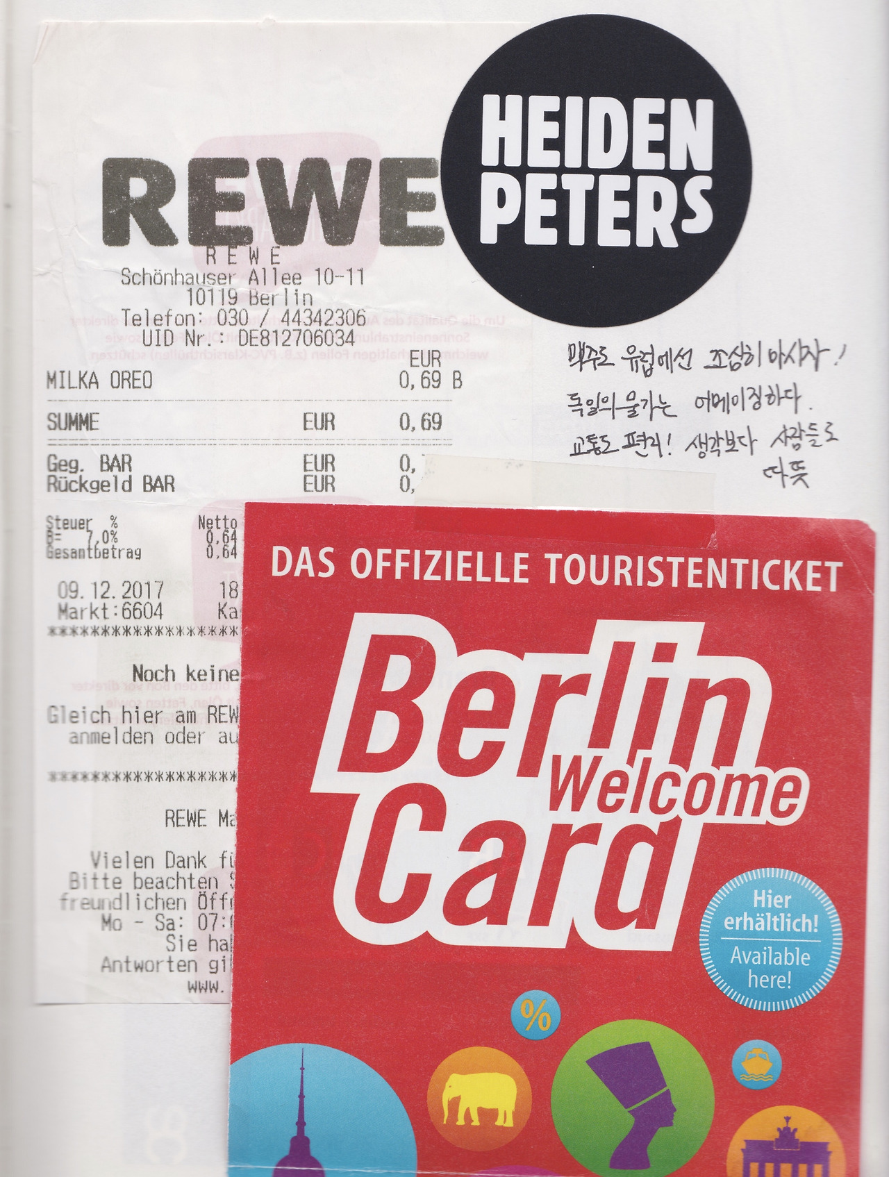 알렉산더 플라츠에 있는 작은 크리스마스 마켓을 구경하고 역으로 향했다. 독일 지하철은 개찰구가 없는데 이유는 결국 정부에게 돌아간 돈은 시민에게 쓰인다는 자율적인 시민의식과 어려움에 처한 사람에 대한 배려(?)하려고 한 것이라고 한다. 아마 독일 친구들에게 들은 것 같다. 타기 전에 30유로짜리 7일 지하철 패스를 끊었는데 여기에도 일화가 있다. 선배 중 하나가 런던에서 워홀을 갔는데 독일 여행 중에 유로가 떨어져서 ATM기가 있는 곳까지 무임승차했다가 배로 벌금을 물었다는 소리를 들었었다. 그래서 처음 여행을 계획했을 때 교통비에 대해서 여유 있게 준비를 해서 얼른 티켓을 끊었다. 역 ‘hackescher markt’ 발음도 어려운 하케셔 마켓으로 향했다. 왜냐하면 ‘Do You Read Me?’라는 서점이 있기 때문이다. 사실 이번 여행은 미술관 여행이 타이틀이고 부제는 책방 투어이기도 했다. 워낙 종이를 좋아하고 사진집이나 동화책을 수집하는 취미가 있기도 하고 유럽 특유 서점마다 판매하는 에코백을 구매하기 위하여 들렸다고도 할 수 있다. 이곳저곳 어슬렁 거리다가 호스텔 직원에게 물어 근처에 있는 ‘REWE’ 마트로 향했다. 1유로 대의 샌드위치와 샐러드, 각종 치즈들, 병맥주 눈이 돌아갔다. 다람쥐 마냥 장을 잔뜩 봐서 숙소 냉장고 한편에 포스트잇에 이름을 적어 넣어두었다. 8시까지 함부르크에서 만났던 일본인 친구 유이를 만나기로 해서 베를린 장벽에서 슈프레 강 건너 ‘Markthalle 9’ 마크트 할레 노인 안에 ‘Heidenpeters’를 찾아 나섰다. 지하철을 타고 마르키쉬 뮤지엄 역에서 내려서 버스를 타러 구글 지도에 의지해 가는데 도중에 버스가 지나가 버렸다. 다음 버스를 기다리는데 종점역에 버스가 잘 다니지 않는 길목이었는지 하늘은 어둑어둑해지고 조금 무서웠다. 버스에서 내려 Heidenpeters라는 맥주집을 찾으러 가는데 약쟁이 소굴이 있다면 이곳이지 않을까 싶을 정도로 어둡고 힙한 사람들이 정말 많았다. 8시가 되기 전인데도 정말 깜깜하고 가는 길목에 가로등의 거리는 너무 멀어서 핸드폰 플래시를 켜고만 싶었다. 마크트 할레 노인 문 앞에 다 다르니 새로운 세상이 나왔다. 마감시간인데도 사람이 많고 높은 천장의 창고 같은 곳에 마켓들이 엄청났다. 어렵사리 유이를 만났는데 구석에 맥주 기계와 계단식 의자가 있고 몇 개의 스탠딩 테이블만 존재했다.
