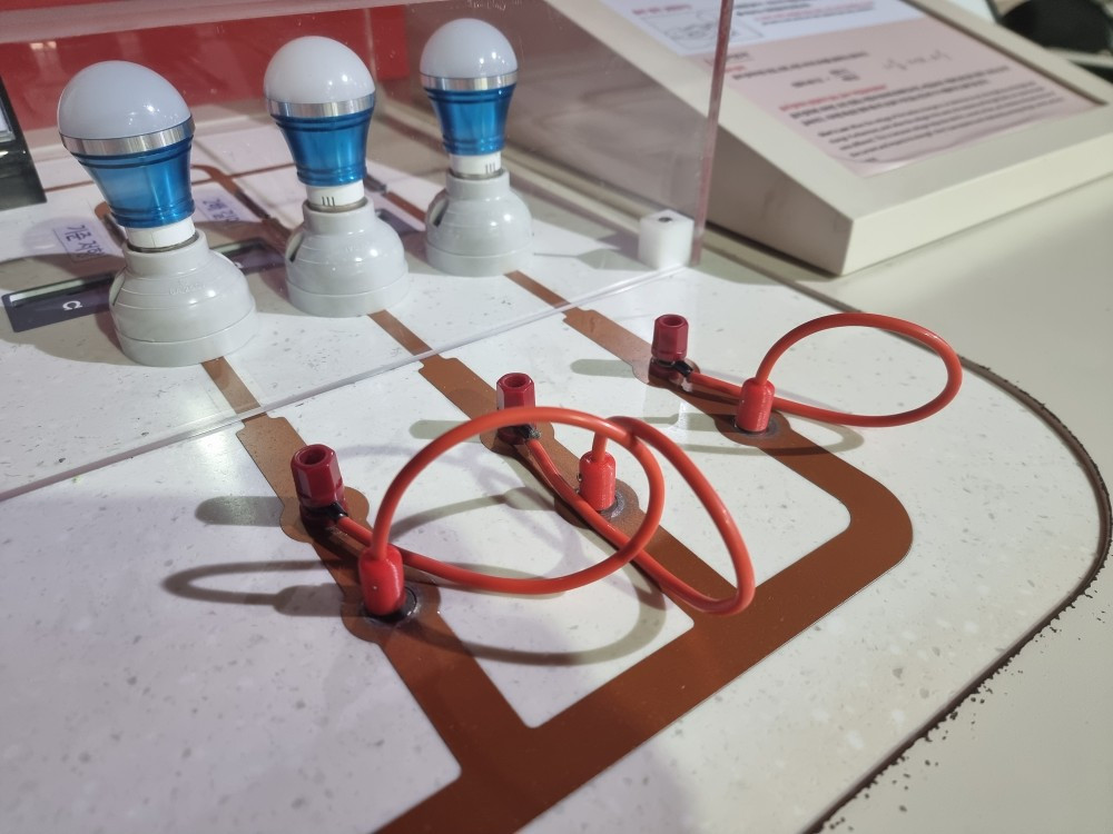 해당 체험물은 관람객들이 전기회로를 여러 형태로 바꾸어 보면서 흐르는 전류량이나 불이 들어오는 전구를 관찰하도록 설계되었다. 특히, 회로연결에 필요한 전기단자를 금속과 자석을 사용하여 관람객들이 쉽게 붙였다 뗄 수 있게 한 것이 특징이다. 하지만, 체험물을 만든 회사에서 간과한 것이 있으니 바로 전선과 단자역할을 하는 금속부품을 연결하는 방식이었다!