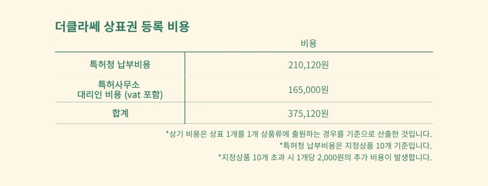 특허청에 상표등록을 신청할 때, 발생하는 비용입니다.