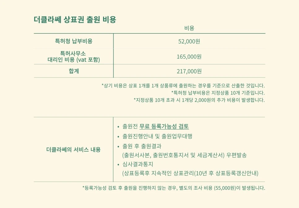 더클라쎄에서는 출원을 진행하시는 고객님들의 상표 등록가능성을 무료로 검토해 드리고 있습니다. 등록가능성이 낮다고 판단될 경우, 등록가능성을 높일 수 있는 방법에 대해서도 제안을 드리고 있습니다.