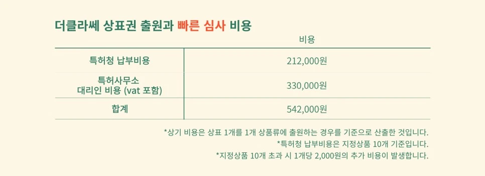 출원 비용 21,7000원 빠른 출원 비용 542,000원 등록 비용 375,120원