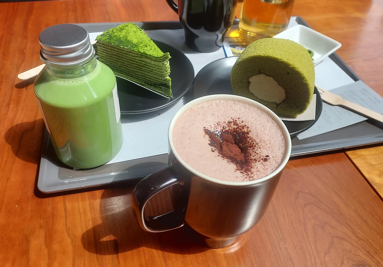 말차 초콜릿 슈페너, 말차 밀크티, 그린티 롤케잌 등을 주문했다. 창가로 비치는 햇살이 따듯했고, 맛있는 차와 빵을 먹으며 좋은 시간을 보냈다.