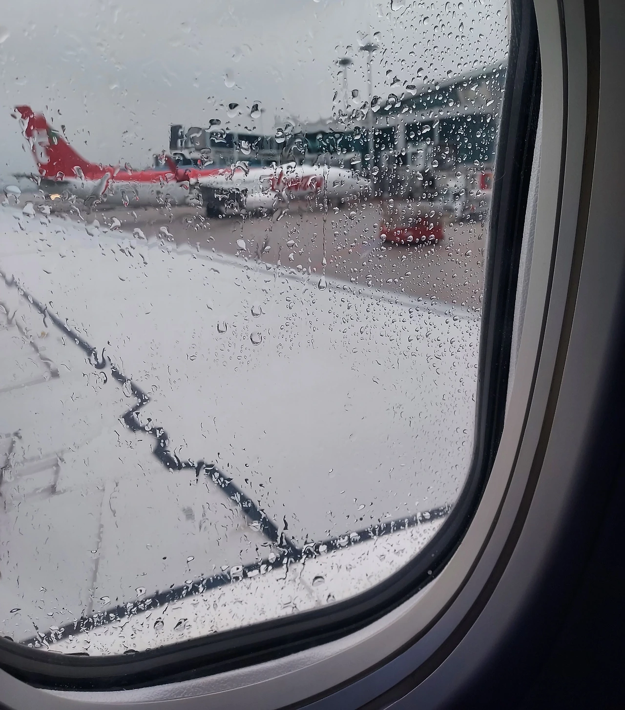 출국 절차가 끝나고, 기내에 오르니 빗방울이 조금씩 떨어진다.