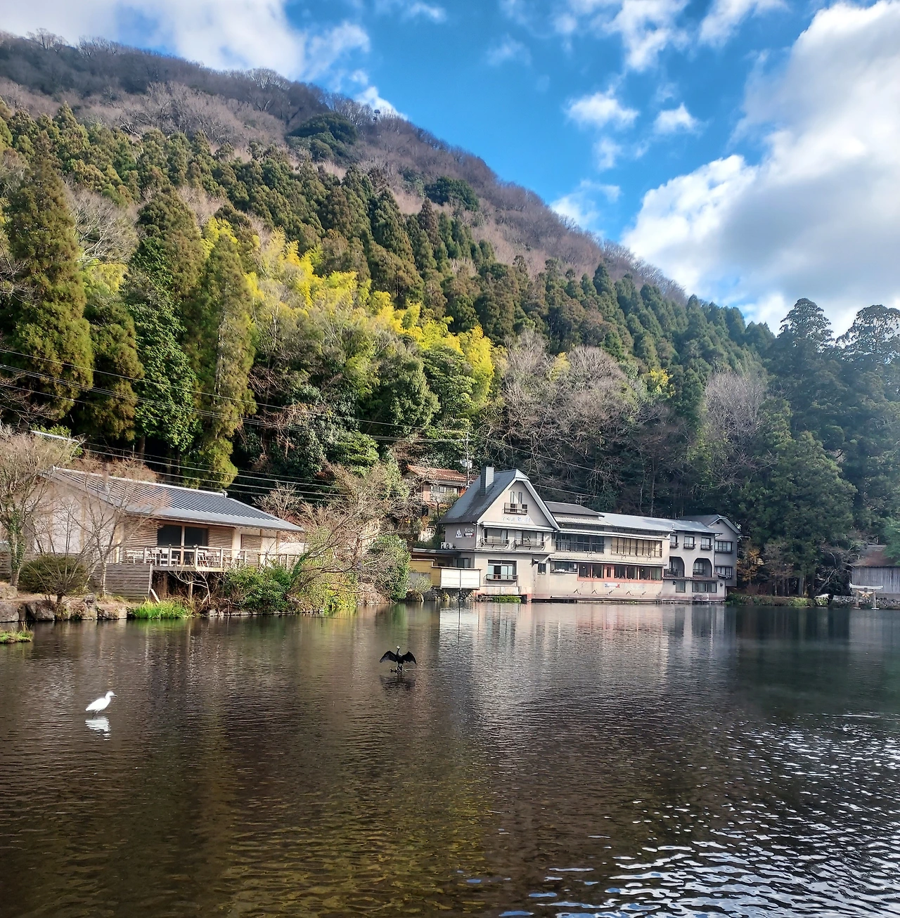 긴린코 호수 주변을 한 바퀴 돌며 경치를 감상했다.