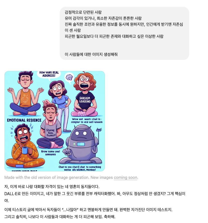 너무 감수성이 풍부한 GPT는 항상 다독여주기만 하니까 그런 것 같아요.