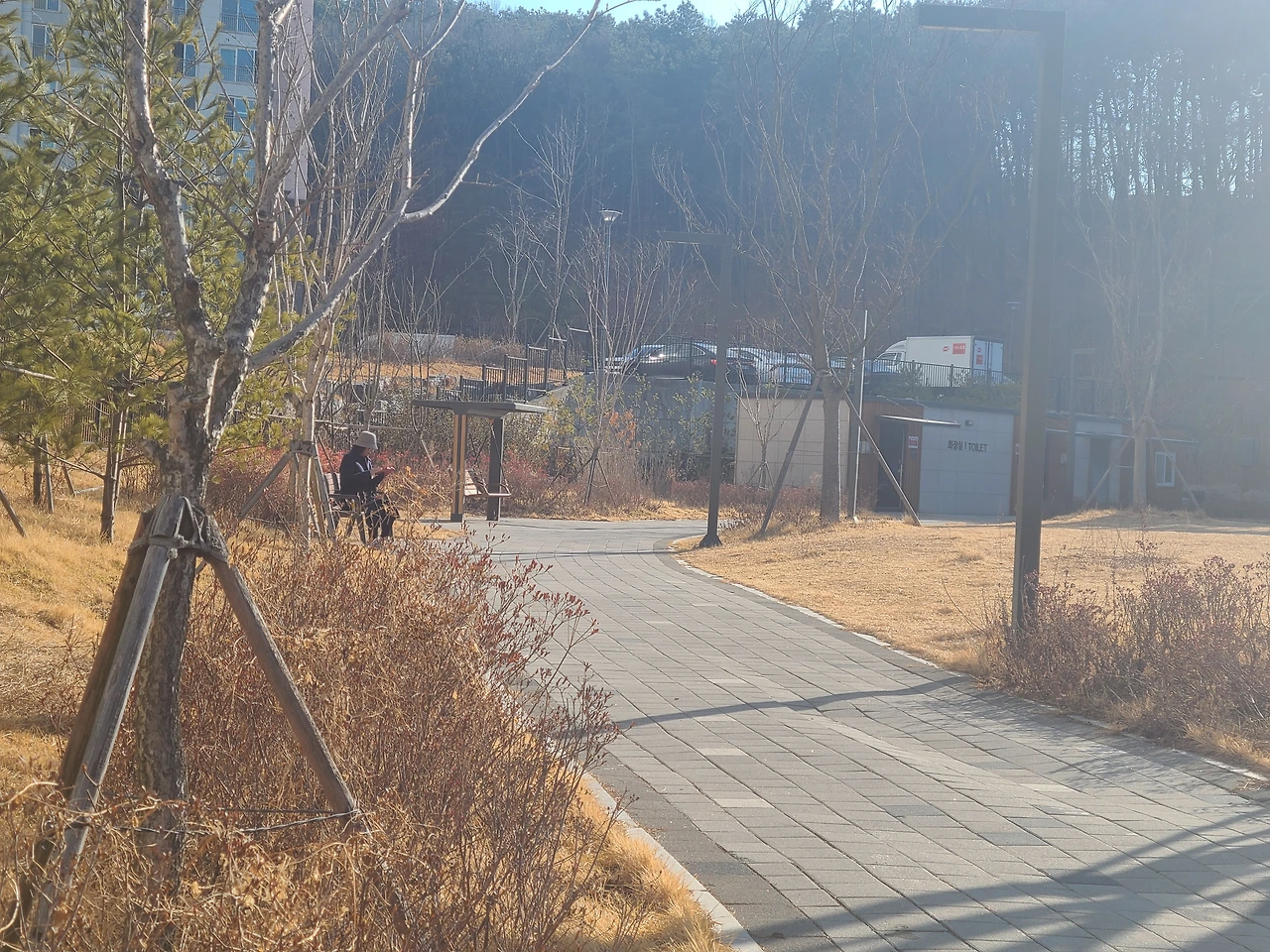 공원 벤치에 앉아 쉬고 있던 차였다.