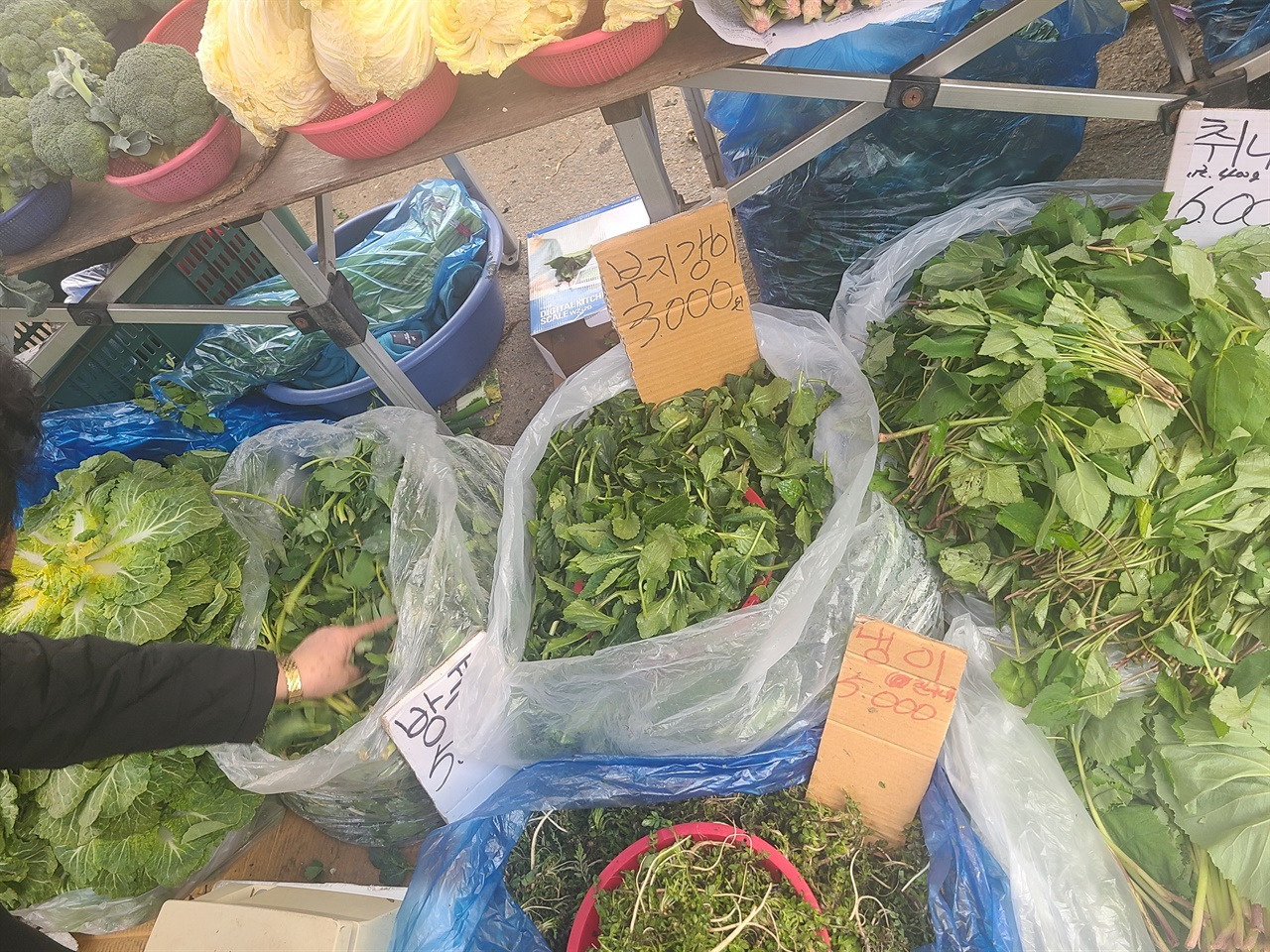 오일장은 날짜와 일요일이 겹쳐 유난히 붐볐다. 좌판 위에 늘어선 채소들은 이미 봄을 한가득 담고 있었다. 방풍나물, 달래, 오이 등, 보는 것만으로도 입맛이 돋았다. 온라인 장보기에 익숙한 나로서는 이 시각적 즐거움이 정말 그리웠구나 하고 느꼈다.