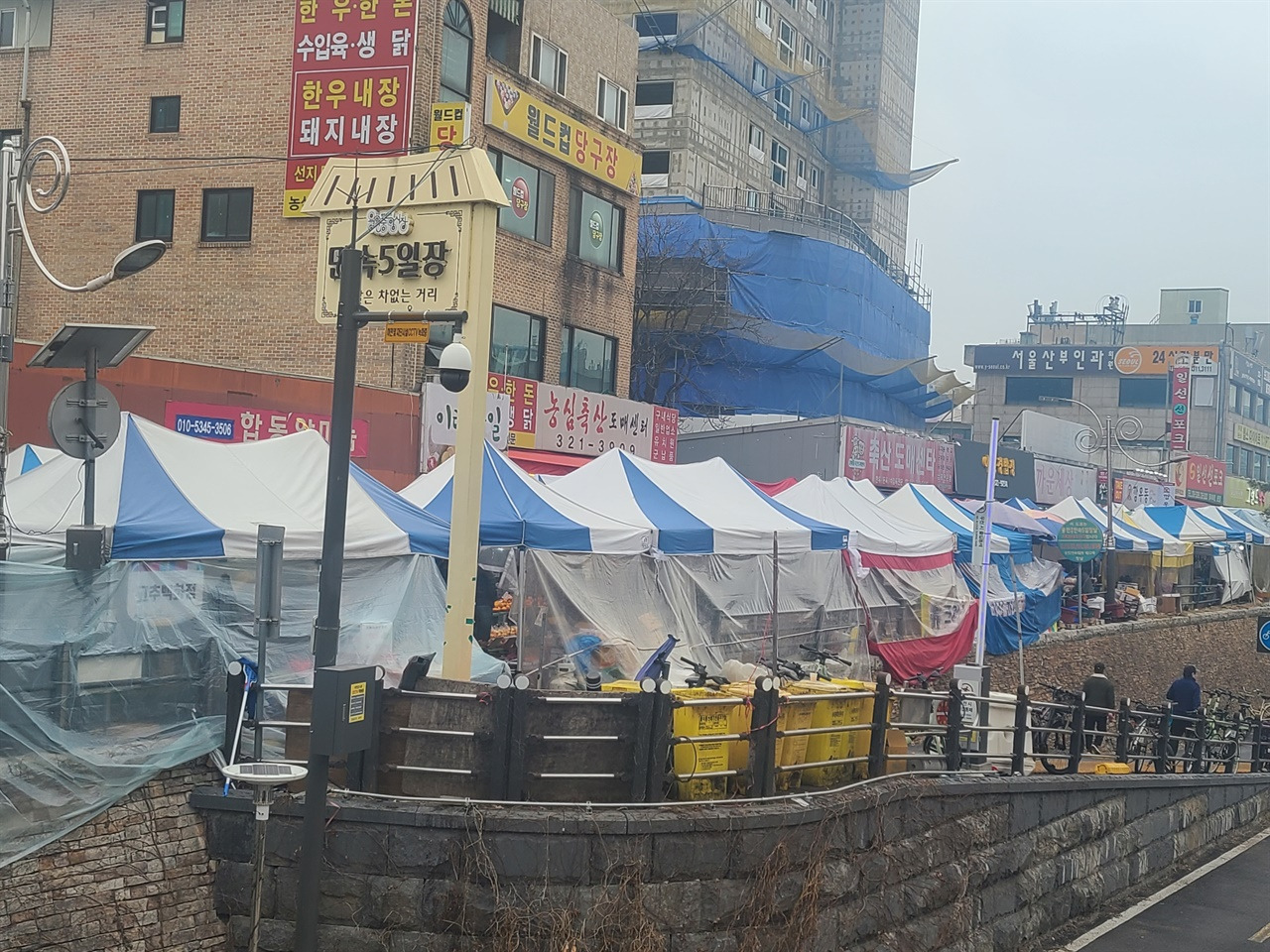 ▲오일장 늘어선 천막천막이 줄지어 늘어선 중앙시장 오일장 풍경.