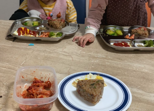 거실엔 어린아이 목소리가 섞인 TV 프로그램 소리가 흘러나왔고, 나는 철제로 된 식판에 실험하듯 만든 반찬을 올리며 아이들이 잘 먹어줄까 고심했다.