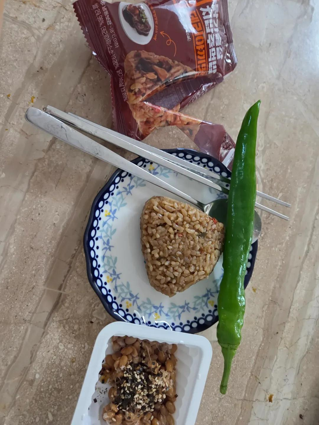 밥 먹을 때도, 배고프면 간식으로도 낫또를 먹었다. 아까 말했듯 잘 질려하지 않는 편이라 가능했던 것 같다. 근데 진짜 맛있었다. 식감도 재밌고 김에 싸 먹어도 맛있고. 한 가지 음식에 변화를 줘서 먹었다. 5월 아삭이 고추랑 같이 먹었는데 아삭한 식감이 너무 잘 어울렸다.
