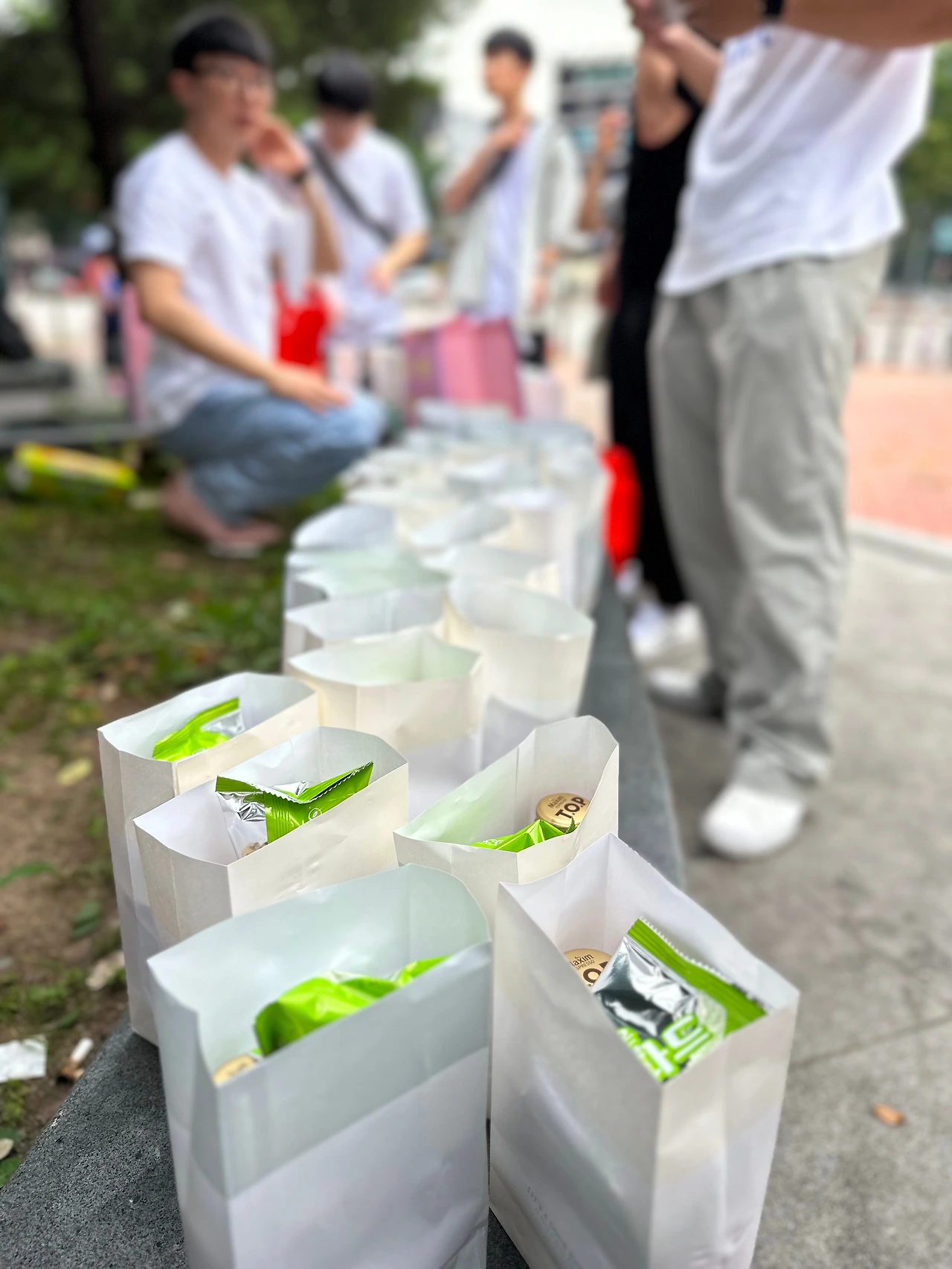 간식들을 준비해서 갔고 우르르 몰려오셔서는 받아가시고, 비 오는 날임에 우리의 우비마저도 가져가시겠다고 하셨다. 간식은 정확히 기억은 안 나지만 50인분 이상 많이 준비했는데 금방 다 나눠드리고 모자라기까지 했다.