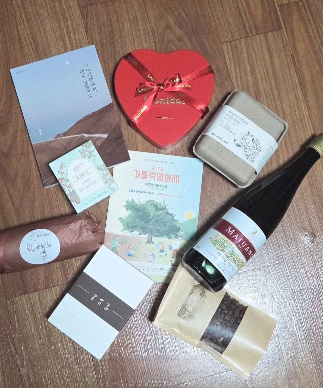 집에 돌아와 하나씩 꺼내보니, 미사주, 소시지, 책, 꿀, 커피, 티백, 초콜릿까지 성심을 다해 마련한 선물들이 차곡차곡 담겨 있었다. 수녀님의 정성 어린 마음까지 함께 담겨 있어, 들고 온 손이 전혀 무겁지 않았다. 폐막식 날에는 꽃다발까지 손에 쥐여주시고, 엘리베이터 문이 닫힐 때까지 감사 인사를 건네며 배웅해 주셨다.