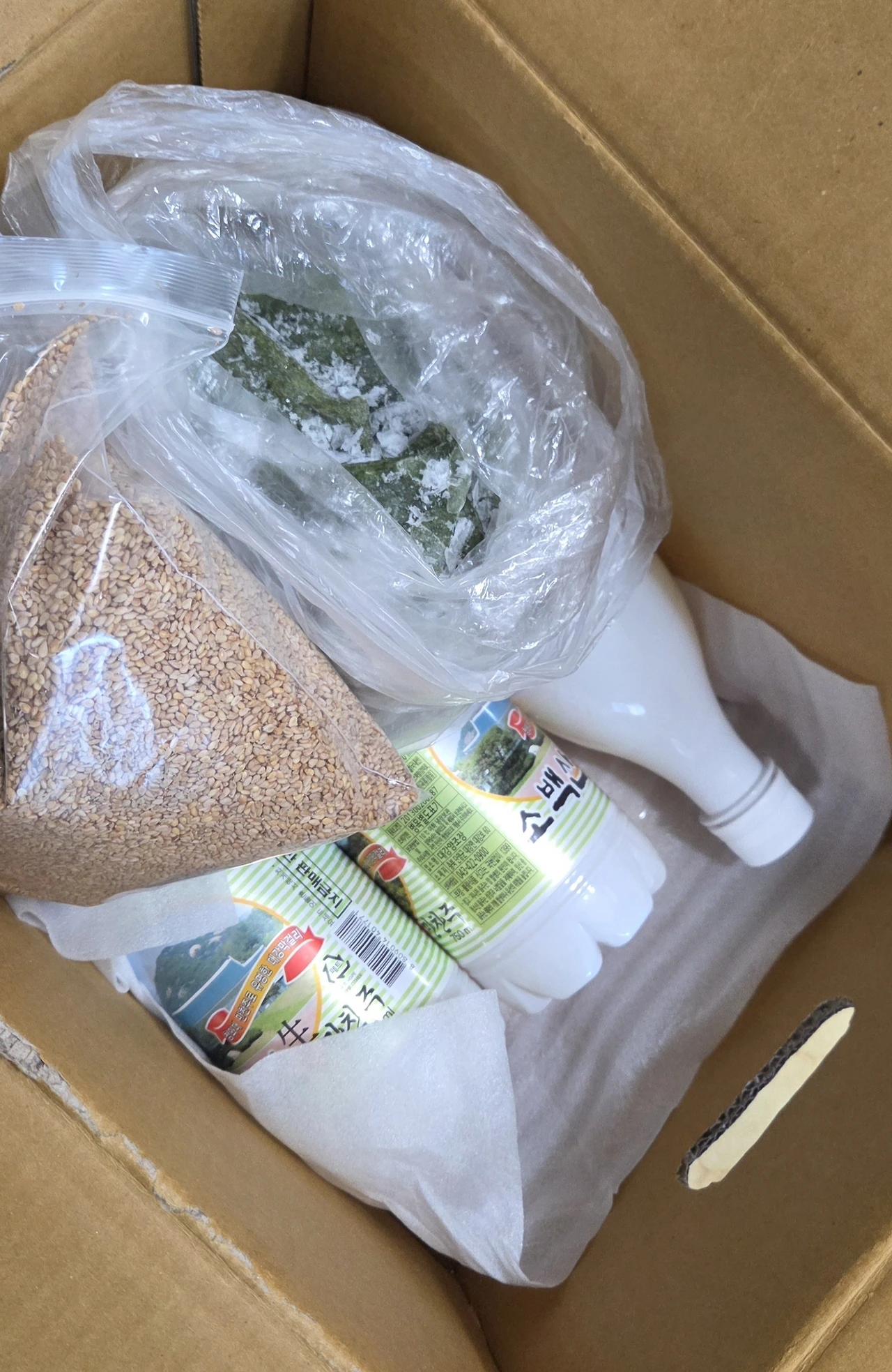 얼마 전엔 아무 말 없이 집 앞에 살포시 놓고 가신 또 하나의 선물 꾸러미를 발견했다. 장인어른이 담양에서 방앗간을 하신다며 손수 볶아낸 통깨에 정갈하게 빚어낸 떡, 현지에서만 팔린다는 소백산 막걸리까지...! 며칠 뒤에는 가족과 함께 빚은 만두를 건네주시며 맛있게 먹는 법까지 살뜰히 일러주셨다.