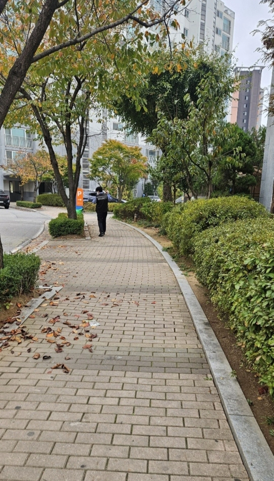 경비원님의 휴무날, 우연히 동네 산책길에서 만나 반려견과 함께 걸으며 대화를 나눴다. 2023년 11월 1일 첫 출근일을 정확히 기억하며, 낯설고 막막했던 그 순간을 들려주셨다.