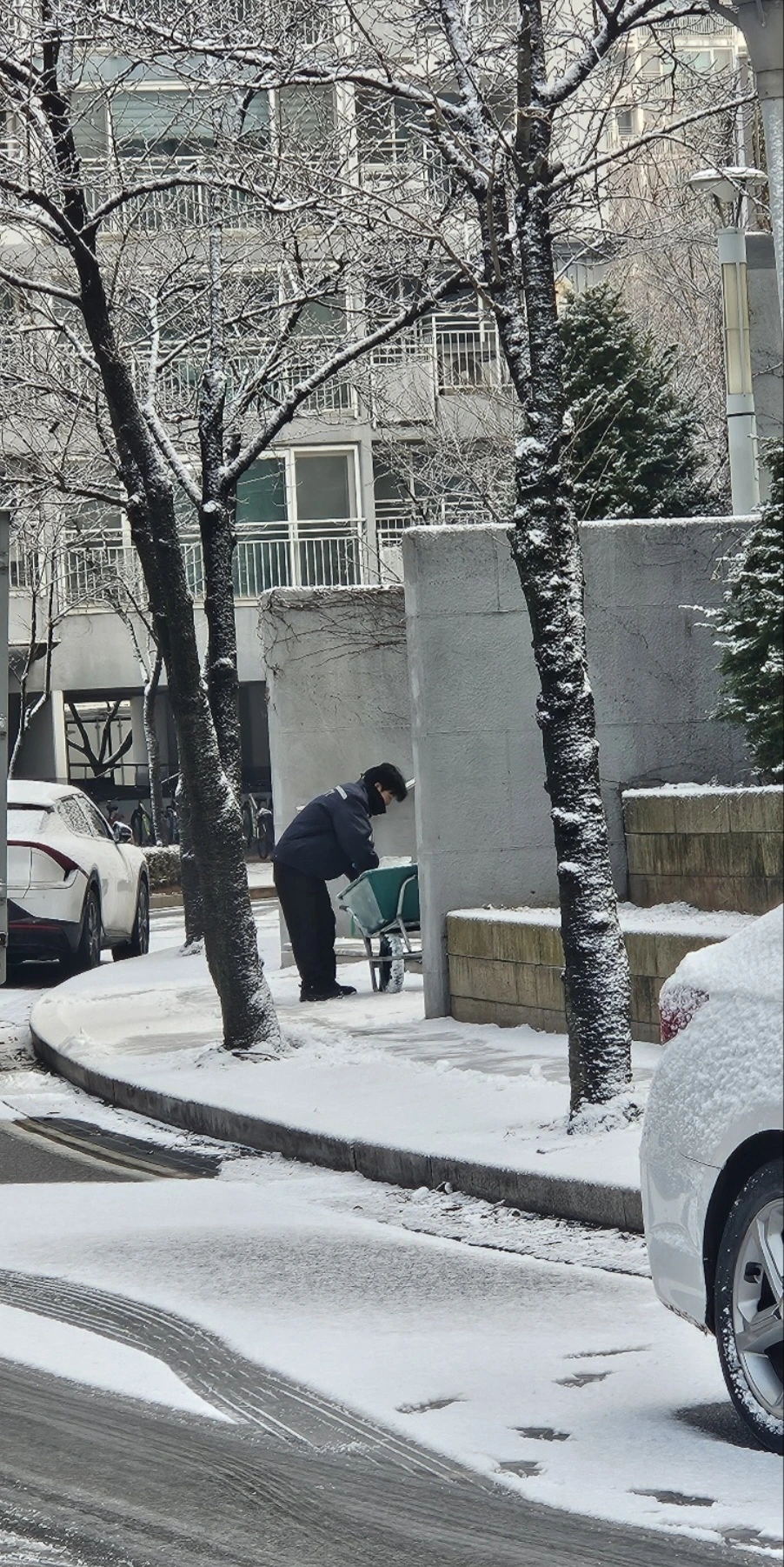 밤새 폭설이 내렸다. 아침에 일어나 커튼을 젖히자 눈앞에 펼쳐진 설경에 잠시 마음이 빼앗겼다. 아래를 내려다보니 보행로는 이미 안전하게 정비되어 있었다. 보행기를 밀며 무사히 걷는 어르신들이 멀찍이 보였다. 아마 경비원님의 이마에도 구슬땀이 제법 맺히지 않았을까.
