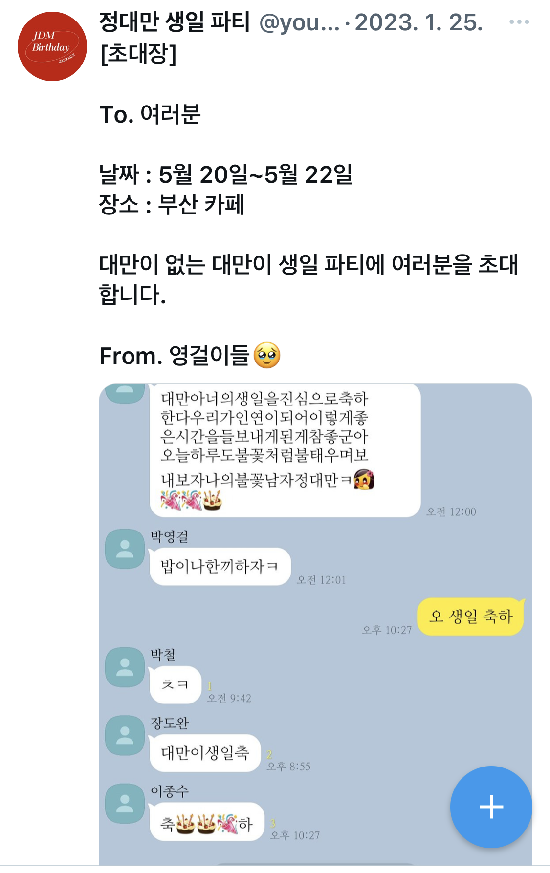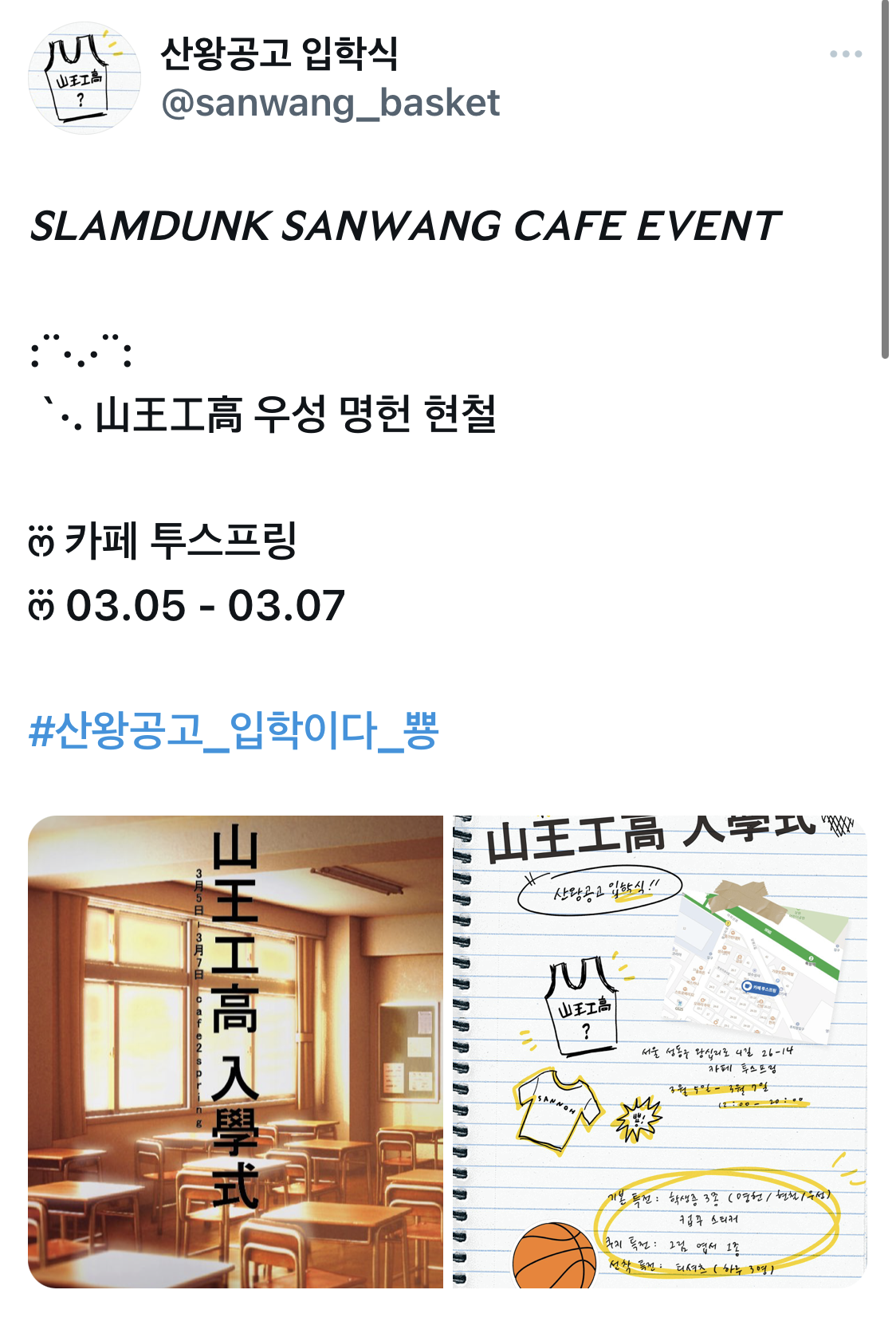 생일 카페는 좋아하는 아이돌의 생일 기념하기 위해 카페를 대관해서 주최하는 이벤트를 뜻한다. 3D 인물들에게 생일카페 자체는 새로운 개념은 아니다. 하지만 3D 덕질의 전유물로만 느껴졌던 카페 이벤트가 2D에도(!) 있다는 것은 주목할 만하다! (작년에는 웹소설 ‘데못죽’ 캐릭터의 생일카페가 열리기도 했다.) 5월에 개최될 예정인 정대만 생일카페 계정이 1월에 생성되었다. 단순히 '생일'카페만 있는 것이 아니다. 3월 5일부터 7일까지는 '산왕공고 입학식'이라는 콘셉트의 카페가 열린다. 정우성, 신현철, 이명헌 산왕공고 주 캐릭터 3명의 학생증, 티셔츠, 엽서 등 다양한 굿즈를 제공한다.