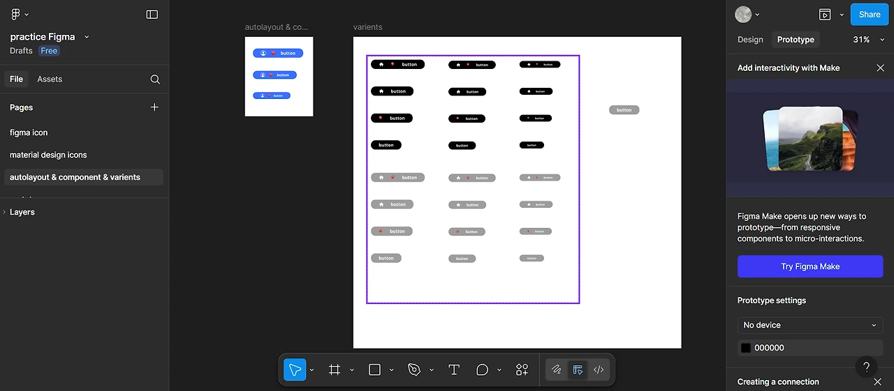 피그마 툴을 전에 익힌 적이 있어서 어렵지는 않았지만, 단축키 등,, 까먹은 것들이 제법 있었다