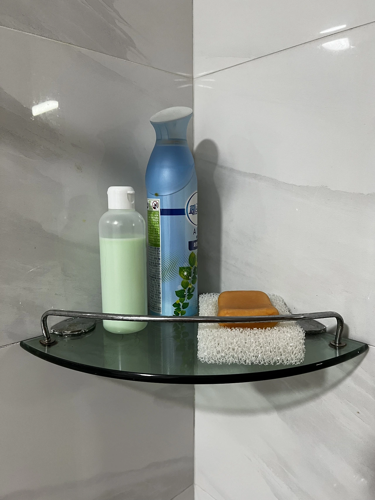 편한 청소방법에 초점을 맞추어 보니 욕실용품을 이렇게 많이 갖다 놓으면 안 되는 거였다.