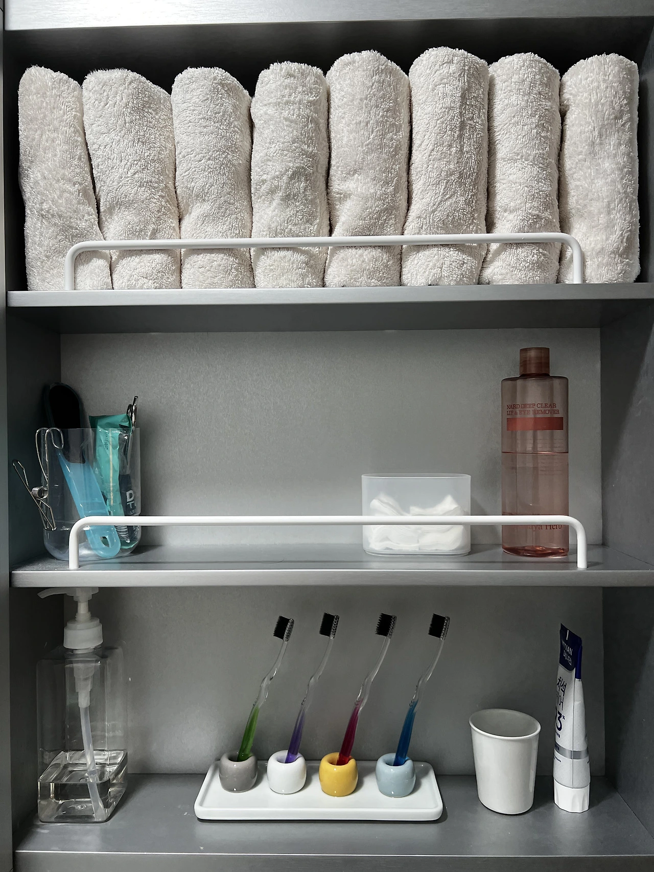 수건은 가족수 정도만 꺼내놓고, 치약이나 비누와 같은 소모품들은 모두 사용한 뒤에