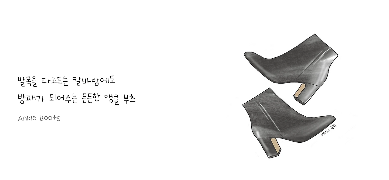 앵클부츠 (ankle boots) | 귀여운 양털부츠를 꺼내는 딸과 새로 산 첼시부츠를 길들이는 남편. 가을이 깊어지면 우리는 그만큼 깊고 포근한 신발로 겨울 채비를 해야 한다. 무더운 날에는 맨살로 다