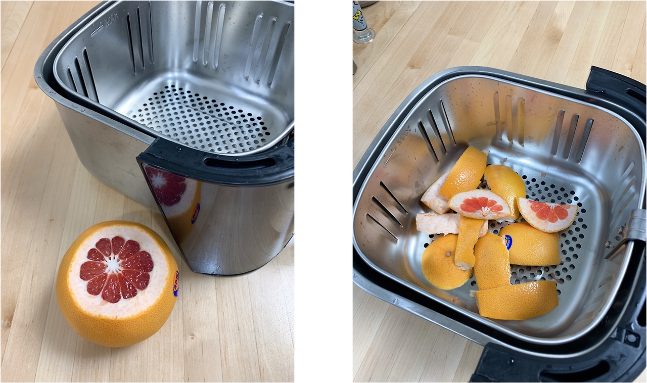 자몽을 후식으로 먹고 껍질만 모아서 바스켓에 늘어놓는다.