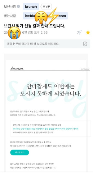 이런 매서운 메일이 없었다면 브런치 작가가 되기 위해서 그토록 끈질기게 시도해보지도 않았을 것이고, 인터넷 공간에서 ‘작가’ 로써 글을 써보지도 못했을 것이다.