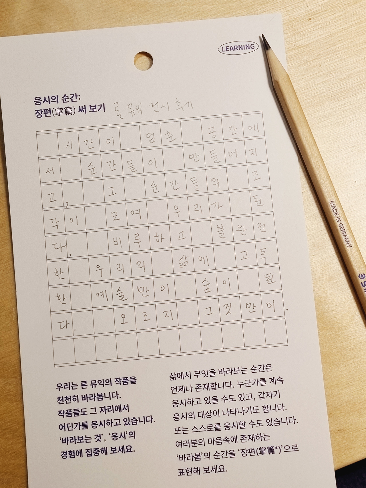 작품은 대개의 경우 드러내 놓고 표현하지 않은 어떤 철학의 귀착점이며, 조명이며, 완성이다.
