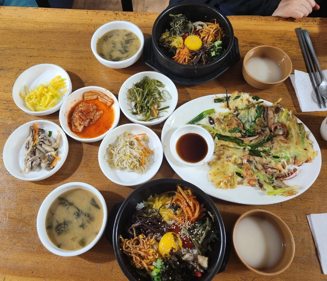 산채비빔밥에 파전에 막걸리까지 마셨다.