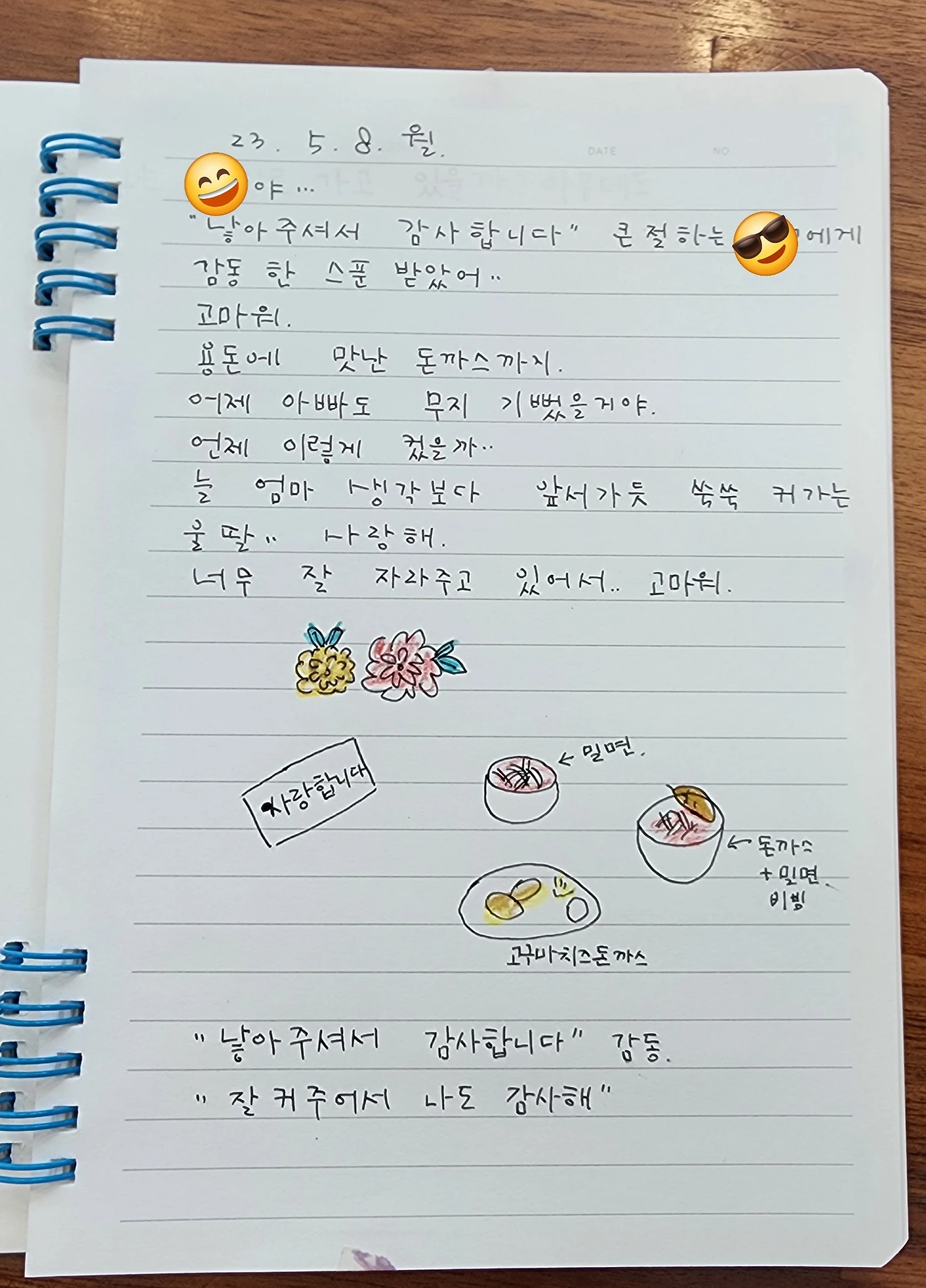 사실 의도한 건 아니지만 아이에게 자연스럽게 감사일기를 접할 수 있게 해 준 건 결과적으로 훌륭한 일이었다. 설명과 이해보다는 가슴으로 그냥 알게 해 주었으니 말이다.