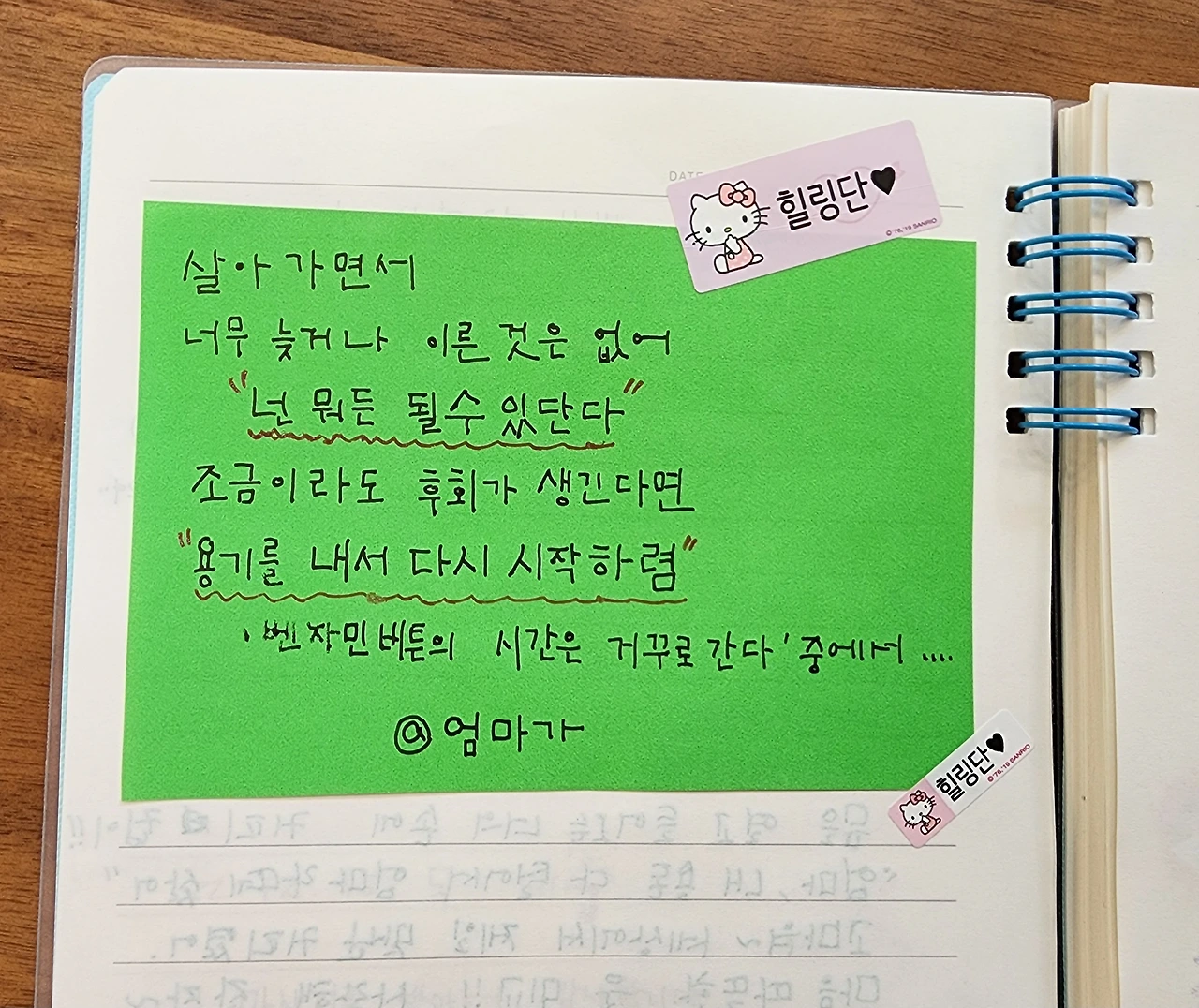 나는 방을 조용히 빠져나와 민트색 노트를 펼치고 너를 향해 감사일기를 옮기고 편지를 쓰며 색칠을 하던 그 순간이 너무나 충만했고 감사했단다.