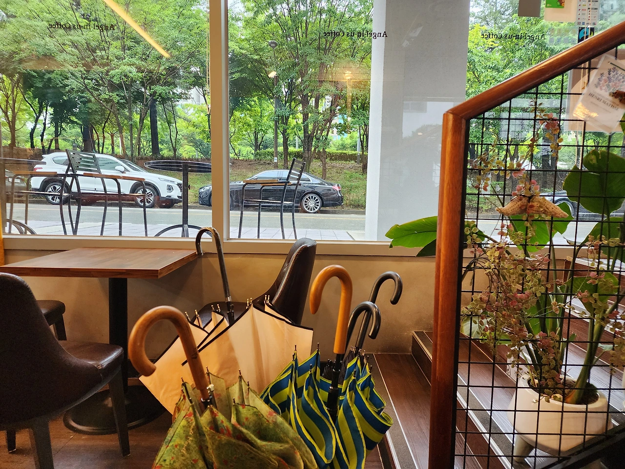 구겨진 면티에 반바지를 입고 슬리퍼 차림으로 들어와 커피를 포장해 가고, 기다리던 연인이 들어오며 눈이 마주치자 웃음이 번지는 커플도 있고, 가로수 잎사귀에서는 빗방울이 툭툭 떨어지기도 한다. 또 비둘기 두 마리가 고개를 까딱거리며 카페 앞에서 얼쩡거리는 것도, 도로 한 쪽에 멋지게 핸들링하며 주차하는 차를 구경하는 것도 재미있으니 별일이다.