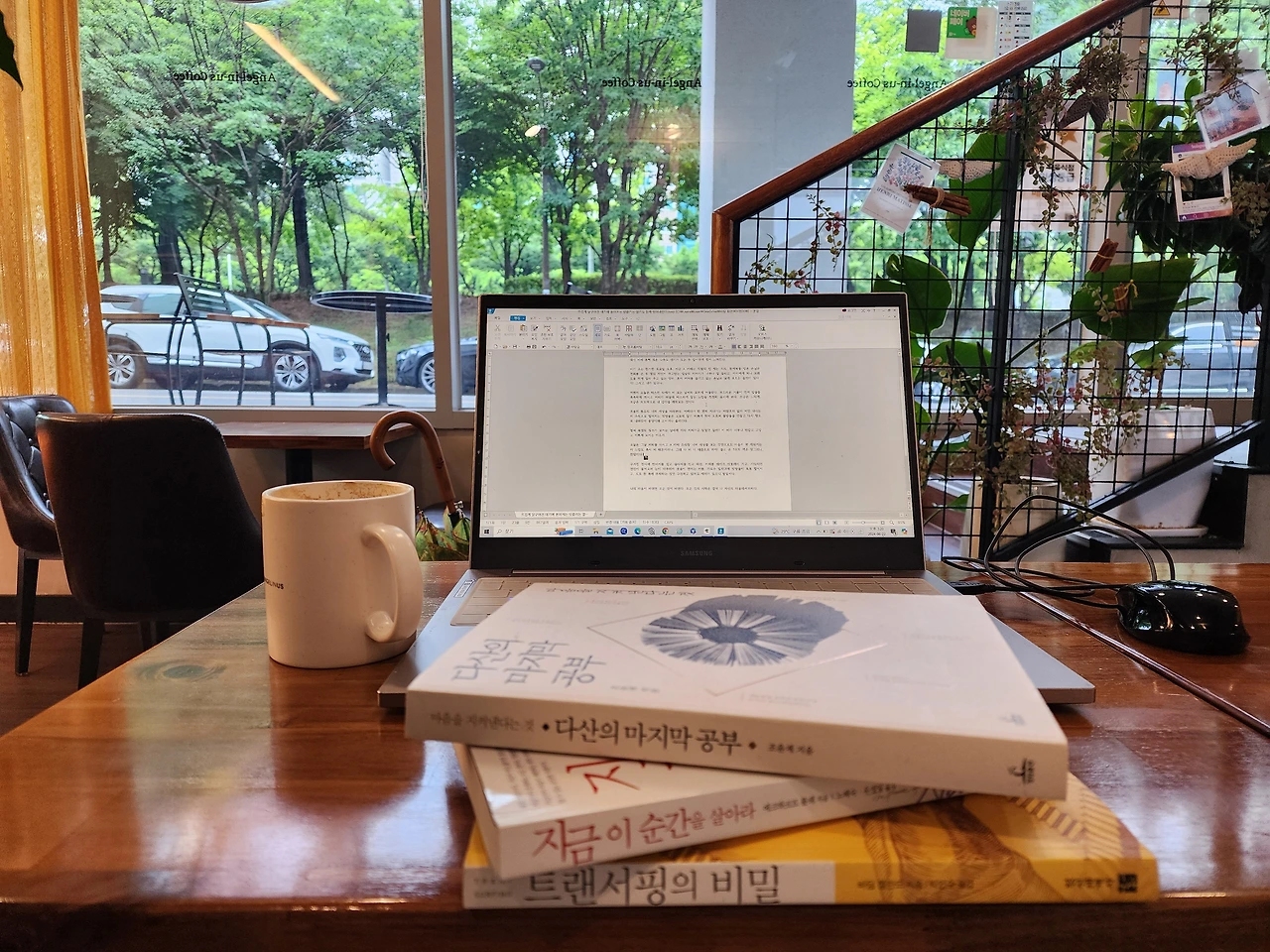 그냥 커피를 마시고 A 카페 유리창 너머 세상을 보기만 해도 기분 좋은 이 느낌. 너마저 비 때문이려나. 그래 다 비! 너 때문으로 하자! 들고 온 3권의 책은 덩그러니 찬밥이다. 이 느낌을 좀 더 즐기고 너희를 만나주마.