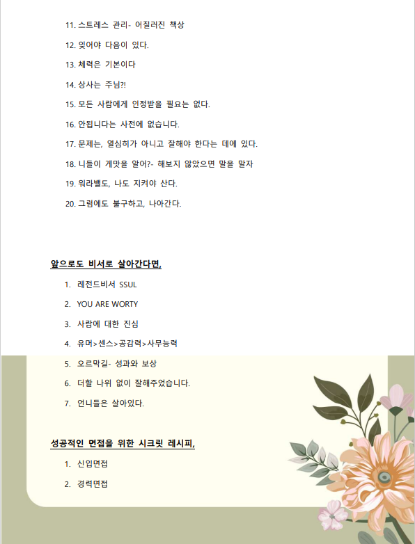 따뜻하고 다정한 사람들과 재밌게 사는 것에 관심이 많습니다.출간작가(오늘도 살아남았습니다)/비서로 21년.