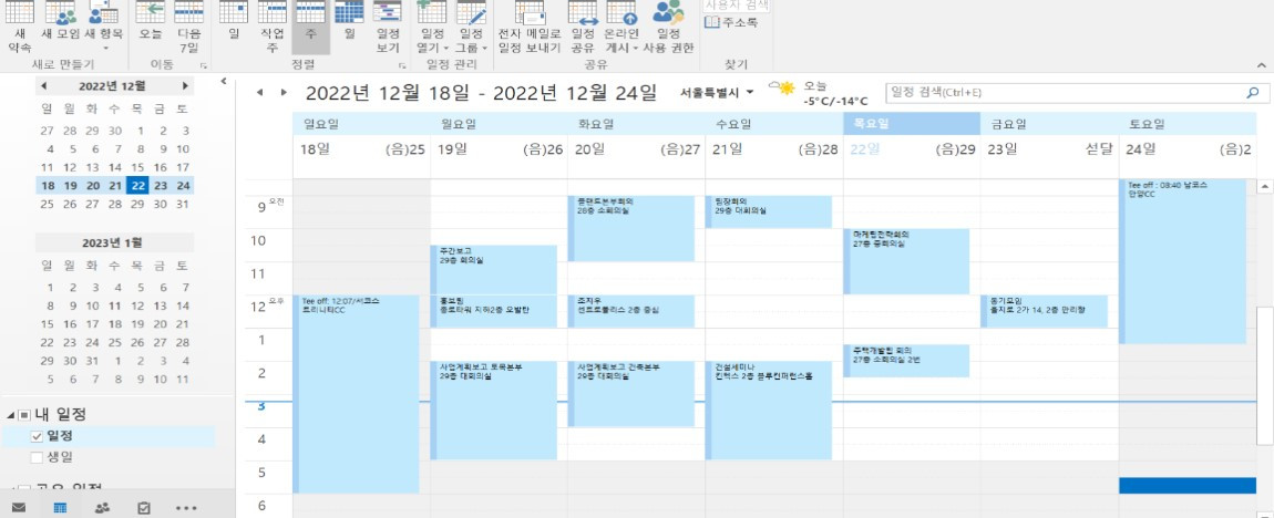 Microsoft에서 제공하는 일정에서 상사와 Outlook 일정탭에서 Exchange서버를 통해 실시한 업데이트 및 공유하는 일정표를 사용하면 누락되지 않고 관리할 수 있다.