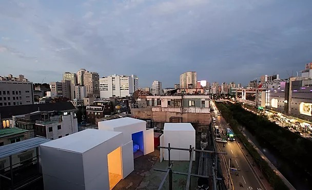 재욱: 얘기해주신 것처럼 2014~2015년에 집중해서 했던 프로젝트예요. 서울에 있는 빈 공간에 큐브 형태의 방을 지은 다음에 야놀자에 올렸어요. '연인들을 대상으로 하는 대실 프로젝트'라고 설명을 하면서 진행을 했거든요. 렌터블 룸이라는 이름이 대실을 그대로 번역한 거예요.