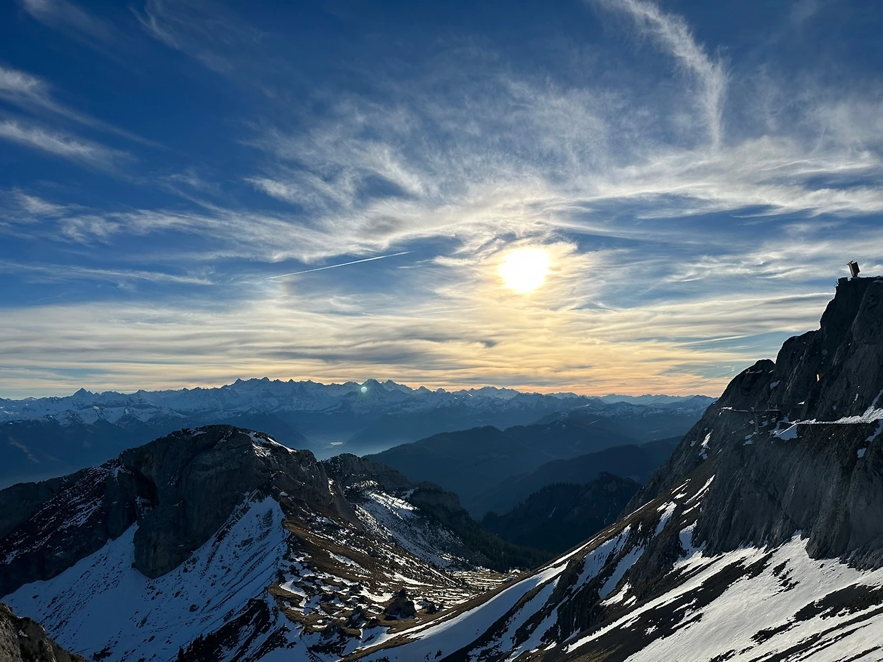 "우와... 미쳤다!" 기억하기로는 함께 정상에 오른 사람들 중 절반 이상이 동시에 같은 멘트를 외쳤다. 어느 정도냐 하면은, 그야말로 '절경'이라는 표현이 딱 이런 모습을 두고 하는 말 같았다. 특히 흔치 않은 겨울 유럽의 맑은 날씨가 모든 것을 완벽하게 만들어주고 있었다. 하얀 설산 위에서 바라보는 끝없이 펼쳐지는 하얀색 지붕들과 적당한 바람, 그리고 그 뒤에 우리를 향해 장렬하는 아름다운 주황빛 태양까지. 사람이나 동물은 어떻게 서도 화보였고, 사진은 그곳에 있는 무엇을 찍어도 명작이었다.