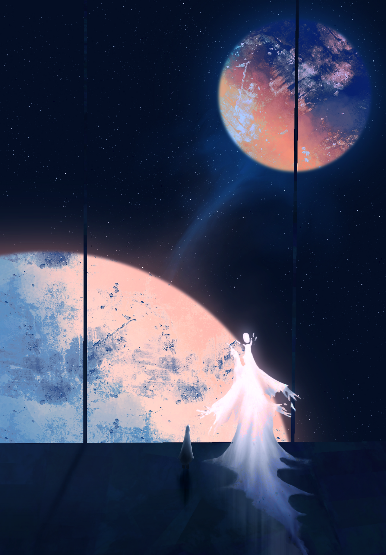 아스트룸은 제 품에 들린 심장을 물끄러미 내려다보고는, 다시 시선을 들어올려 끝을 바라보았다. 추상적인 형태로 은은하게 빛나는 어떠한 형태. 그는 문득 다른 성간 상인에게서 그들이 목격하는 사피엔샤의 모든 부분은 그저 3차원에 한정된 단편적인 부분이라 들었던 것이 떠올랐다.