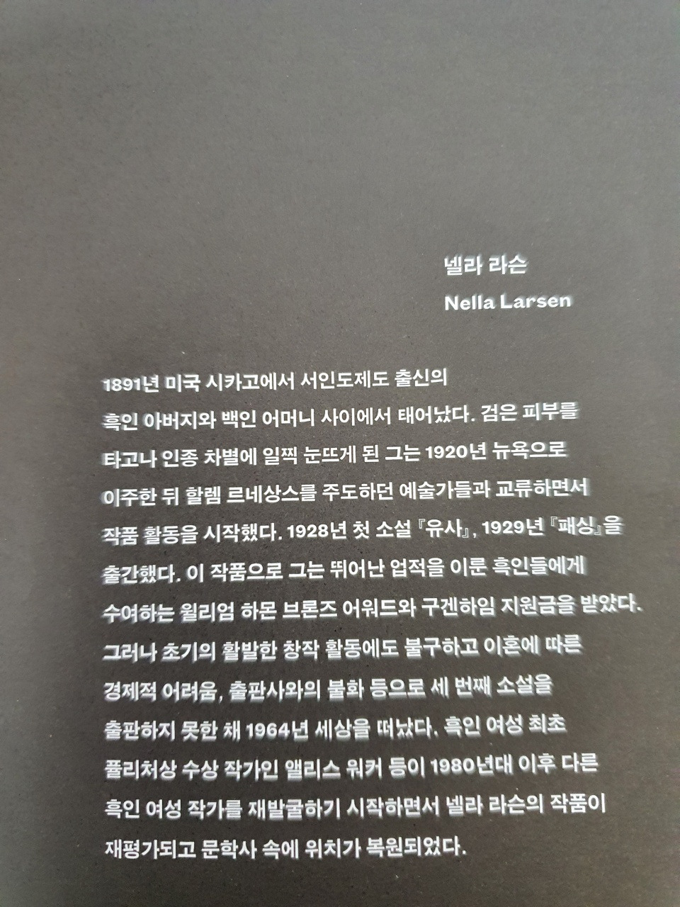 그녀가 말했다. ‘패싱’은 정말 알 수 없다니까. 우리는 패싱에 동의하지 않으면서도 결국 용서하잖아요. 경멸하면서 동시에 감탄하고요. 묘한 혐오감을 느끼면서 패싱을 피하지만 그걸 보호하기도 하죠.(p 110)