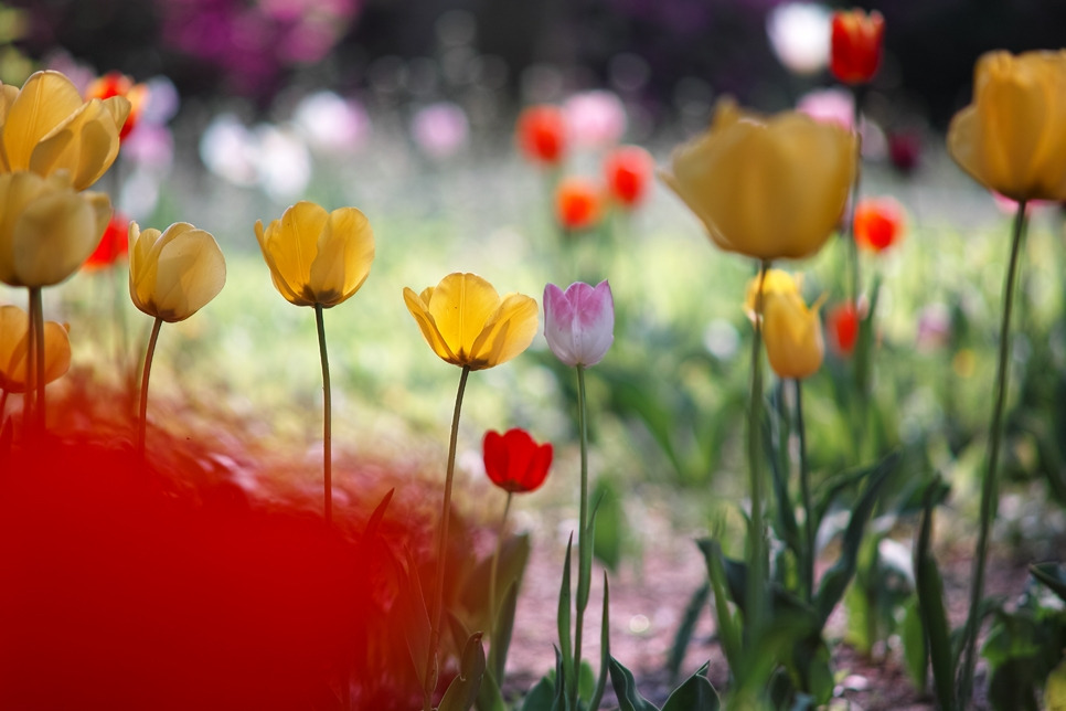 그 분은 분명 뭔가에 꽂혀있었다. 삼각대 위에 카메라를 올려놓고 화단 앞에 쪼그려 앉은 채, 몇 분이 지나도록 꼼짝하지 않았다. 앞에는, 호수 건너 풍경을 배경삼아, 튤립이 여러 송이 피어 있었다. 탁 트인 배경 앞에 역광으로 빛이 들어 환하게 밝혀진 꽃송이가 눈길을 끌었다. 바람이 불면 꽃이 흔들렸고 바람이 잦아들면 흔들림이 멈췄다. 그가 원하는 장면이 흔들리는 꽃송이인지, 흔들리지 않는 꽃송이인지는 알 수 없었다.