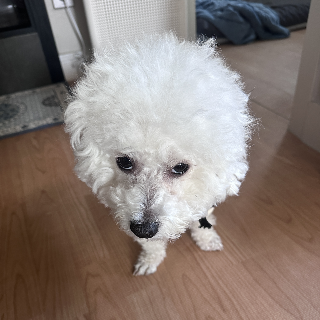 그래서 백설이는 1살 때까지 보호자와 부모견과 살았다.
