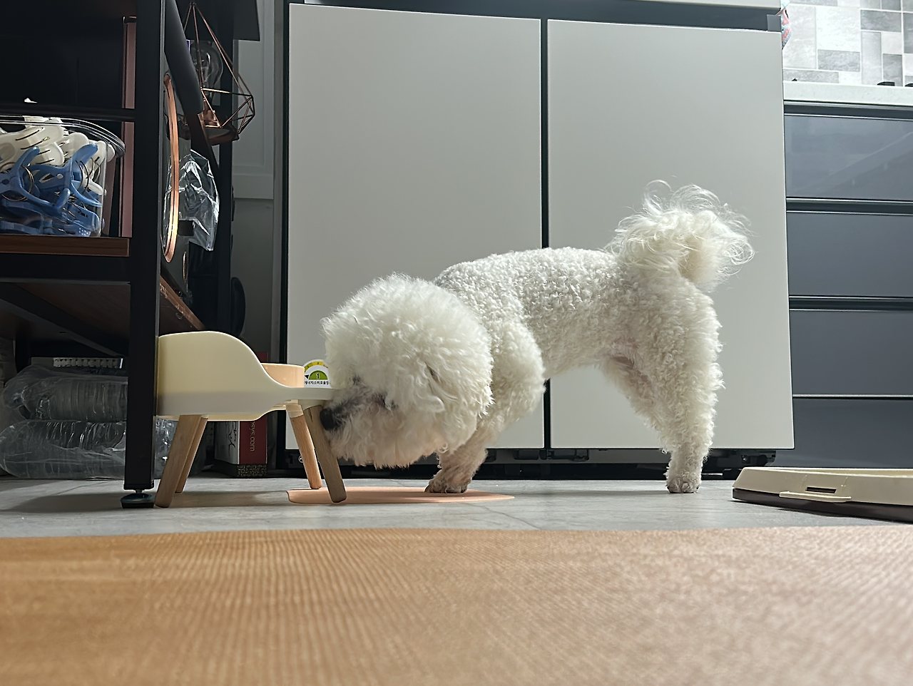 백설이는 당연히 밥보다 간식을 더 좋아하지만, 밥을 안 먹지 않는다.