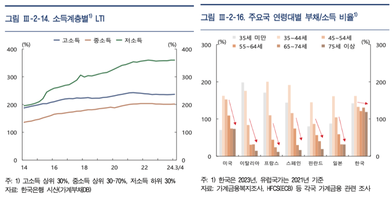 문제는 취약계층이다. 소득이 낮을수록 부채가 소비를 제약할 가능성이 크다. 보고서는 저소득층과 고령층의 LTI가 특히 높은 수준임을 보여준다.