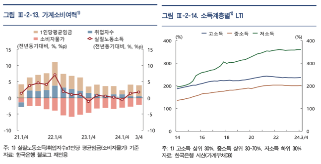 특히 가계부문에서는 소비여력이 제약적인 가운데, 저소득층의 높은 부채의존도로 소비제약이 심화될 수 있는 상황이다.