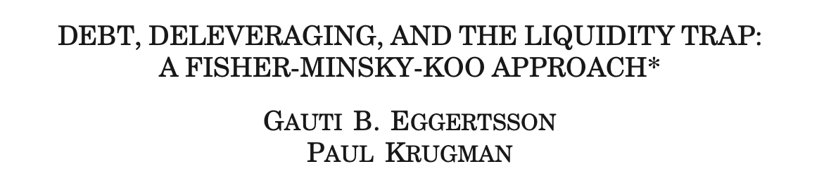 그렇다면 어떤 조건 하에 재정정책은 그 효과를 거둘까? 노벨경제학상 수상자 크루그먼(Paul Krugman)과 그의 공저자 에걸트슨(Gauti Eggertsson)의 유명한 논문은, 경제주체 중 일부가 높은 부채를 지고 있고, 부채축소(디레버리징, deleveraging)로 인해 소비가 제약되는 상황을 상정한다. 이 상황에서는 재정정책의 효과를 제약하는 (1)과 (2)가 작동하지 않는다. 이때 소비가 제약된 경제주체에게 재정정책이 쓰인다면, 총수요를 진작시키는 효과를 가져온다.