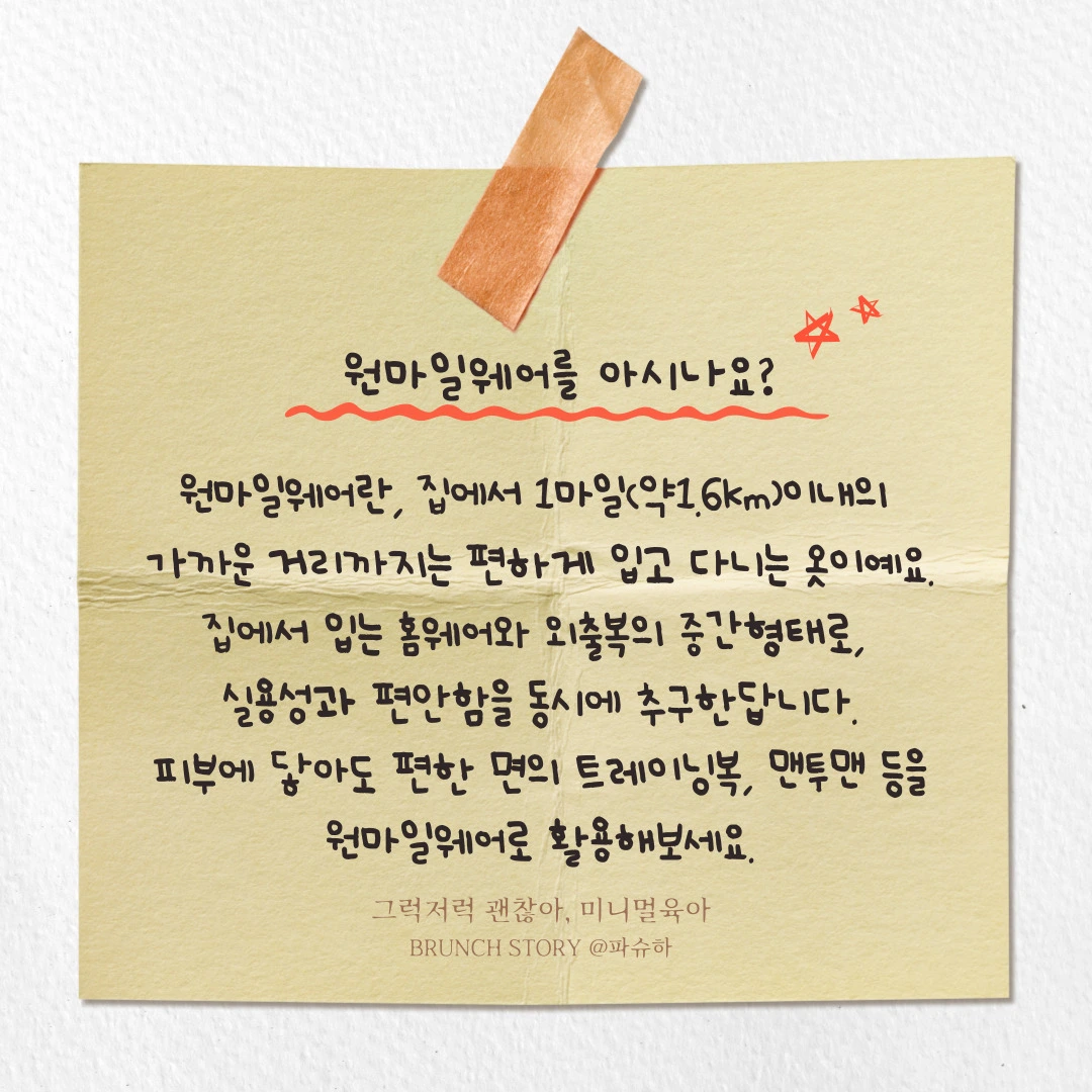 이후로 나는 홈웨어를 고를 때 오히려 더 깐깐하게 고르는 습관이 생겼다. 적어도 집 앞으로 나갈 수 있어야 하는 동시에 그 옷을 입고 잠도 들어야 하니까 말이다. 아이를 어린이집에 보내고 나서는 '잠깐 등원할 때 입고 다녀와도 괜찮은 옷'이라는 단서도 붙이기도 했다.